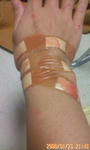 外に出た興奮と、棒にビックリして猫自身パニック状態になりこんなになるまで噛まれまくりました。いやー、やっぱり猫でも牙で噛まれると血出ますね。