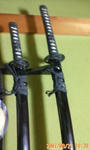 こんばんはまおです。まだ23時にもなってないのに猛烈に眠いです。実家に帰ると眠くなるのは何故だろう。多分明日からも温泉か酒か寝るかしかしないような気がする。ちなみに下の画像は実家に飾ってる刀です。三本あります。ゾロができるよ!長さも重さも本物と同じです。一本が結構重い!よくこんなの銜えられるな!