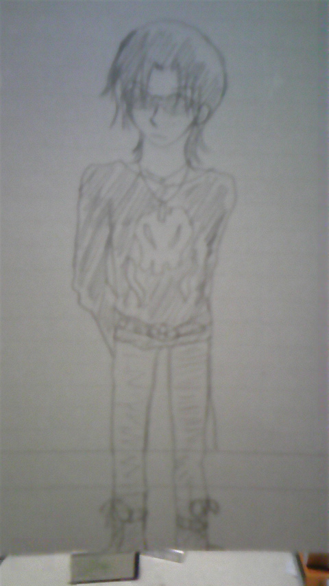 黒地に黄色でドクロの模様のロンTにゴツめベルト、スキニージーンズ、編み上げミドルブーツにグラサンでした。